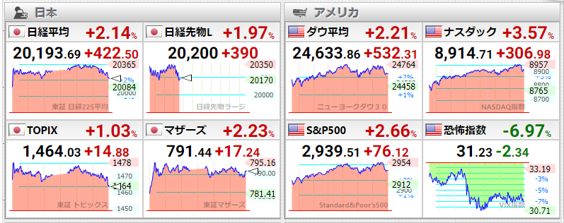日経、新興ともに強い一日。