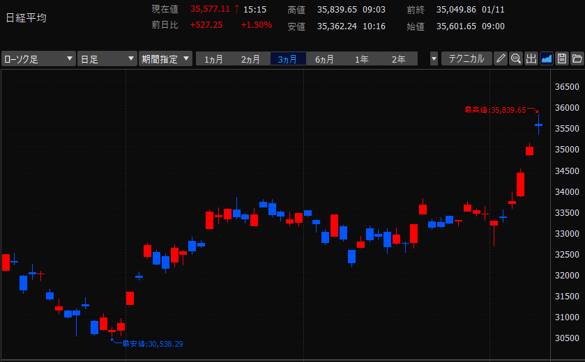 日経6営業日で約2100円の約6%もの上昇、今年も毎日デイトレするより大発会の引けに買ってたら良かった1年になるのかな。まさかね( ̄∠  ̄ )