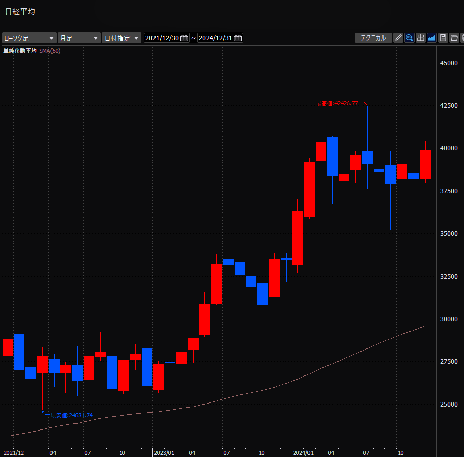2024年終了!日経平均、年末の終値としてはバブル期の1989年を上回り、これまでで最も高い水準の39894円引け。