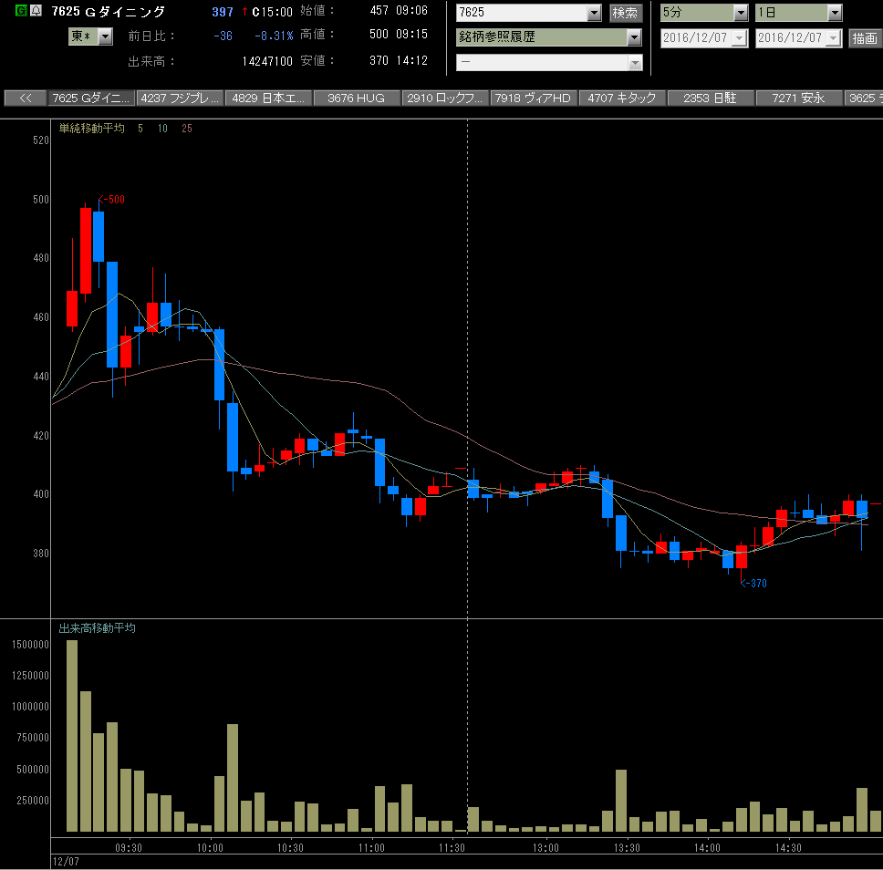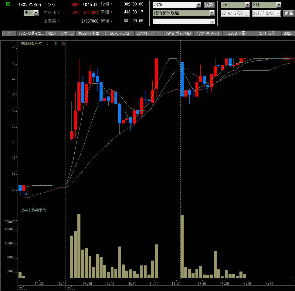 5連続ストップ高の黒田精工、今日はさすがにザラバ動くと思いきや寄らずのストップ高!これで6連続ストップ高かあ、ホルダーうらやましい。